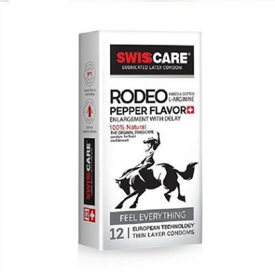 کاندوم بزرگ کننده و تاخیری خاردار سوئیس کر Rodeo Pepper Flavor بسته ۱۲ عددی